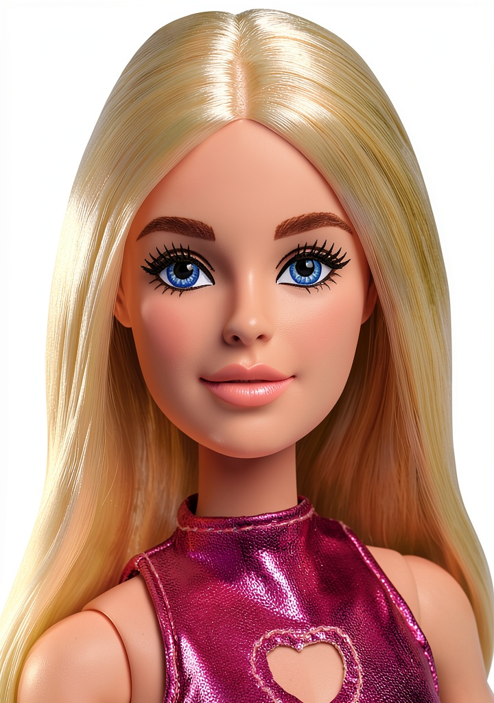 • Blond hair styled down for a sleek and modern look that enhances play versatility.