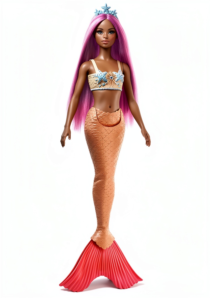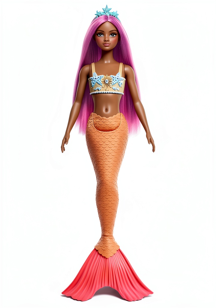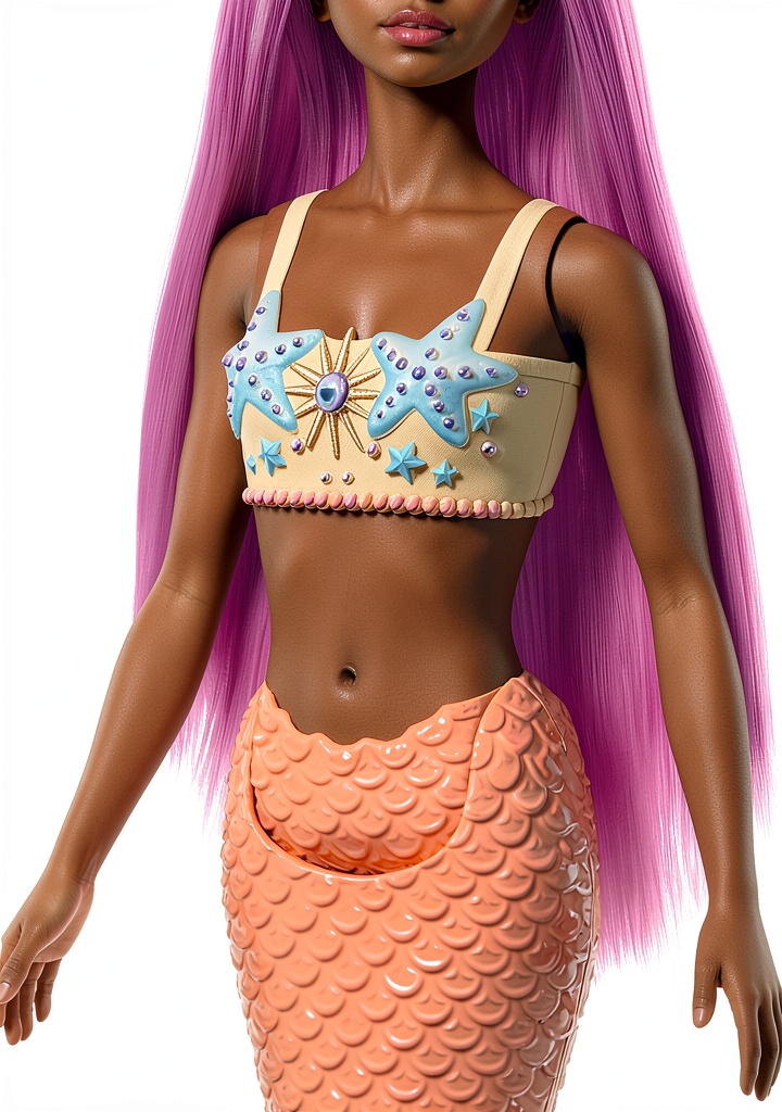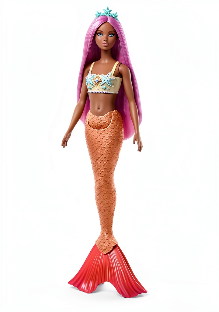 Discover the Barbie mermaid doll, a captivating toy designed to spark imaginative undersea adventures. This doll features a detailed starfish bodice and a soft orange tail with an elegant ombre fin, crafted from high-quality materials for durability. Her vibrant pink and orange hair is complemented by an ocean-inspired headband, adding a touch of sea style. Measuring 1.87 x 4 x 12.75 inches and weighing 1.83 ounces, this doll is lightweight and easy for kids to handle. Manufactured by Mattel with model number HRR05, it’s recommended for ages 3 and up, ensuring safe and engaging play. Released in November 2023, it has earned outstanding customer reviews, reflecting its appeal and reliability.